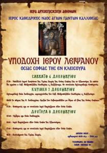 Οι εκδηλώσεις θα περιλαμβάνουν την υποδοχή της Τιμίας Χειρός της Οσίας Σοφίας, Όρθρο, Αρχιερατική Θεία Λειτουργία και κεντρική ομιλία, χοροστατούντος και ομιλούντος του Σεβ. Μητροπολίτου μας κ. Καλλινίκου.