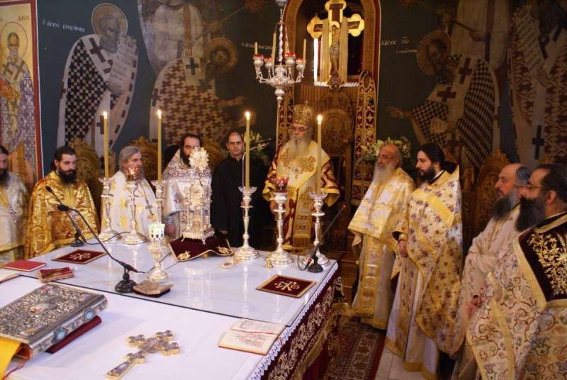 Στην τέλεση του Εσπερινού και της Θείας Λειτουργίας αρκέστηκε και φέτος ο Σεβασμιώτατος Μητροπολίτης μας κ.κ. Σεραφείμ, επ’ ευκαιρία των ονομαστηρίων του.